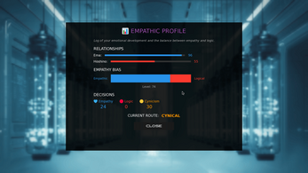 Your emotional alignment (Empathy, Logic, Cynicism) shapes the story and unlocks one of three main endings—and a secret final one.